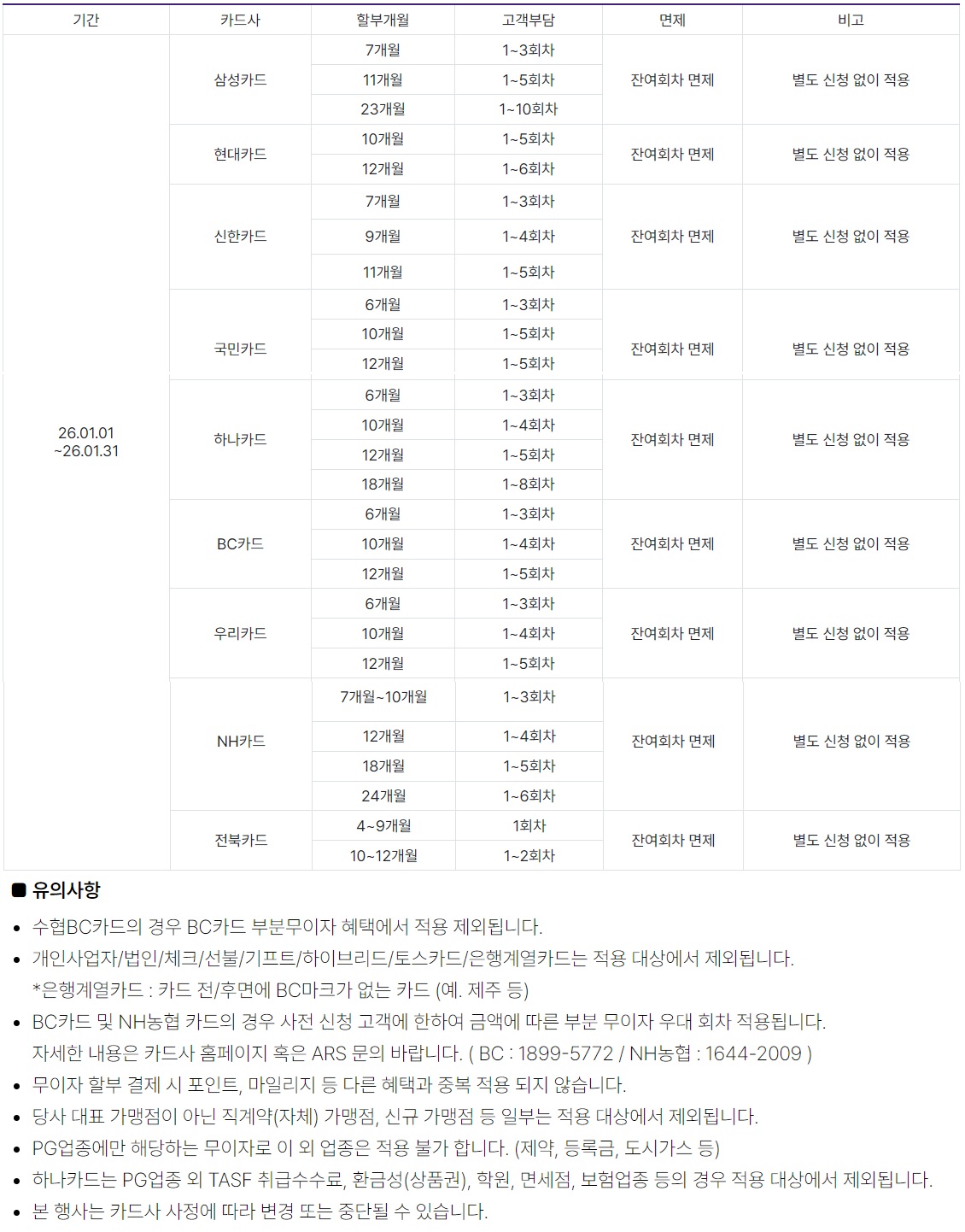 ▣ 2025년 12월 카드사 무이자 할부 혜택 안내