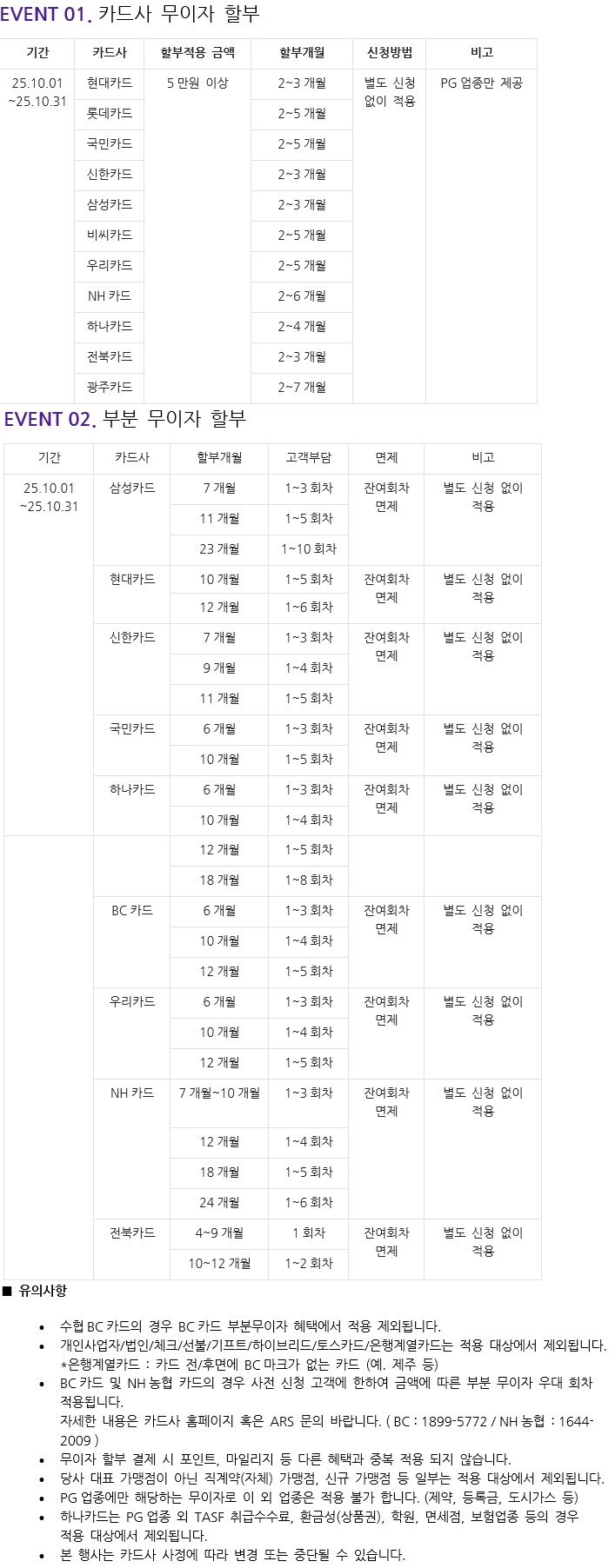 ▣ 2025년 10월 카드사 무이자 할부 혜택 안내